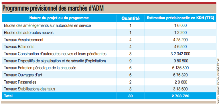 Le ministère de l’Equipement et de l’Eau vient de publier son programme prévisionnel des marchés de BTP pour l’année en cours. Les détails.